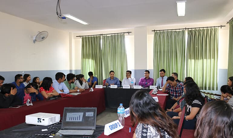 Kuber Wiz participants of 6th semester Finance and Banking presented their investment analysis to esteemed capital market participants. Guests for the program were Mr. Ajay Shrestha (Chairman and Managing Director, i-capital Pvt. Ltd.), Mr. Nitesh Kumar Agrawal (Executive Chairman, ABC Securities Ltd.), and Mr. Atit Lal Shrestha (CEO, Merolagani) who gave our students brief further insights and provided valuable feedback to improve their analysis.